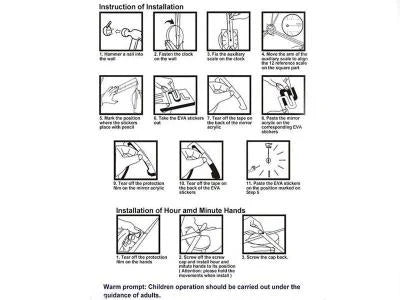 Note : Please do not install the pointers too tightly, if not, the clock won’t move. There is a protective film on the surface of the wall clock, please tear it off after installation.